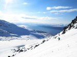 Denna dag mötte vi upp med bröderna Bjorn och Johan Arnemo som kommit till Nordnorge för att topptura. Vi ställde in siktet på Sovande dronning som jag förstår ska vara en annan av Narviks klassiker. Även denna dag bjuder på mäktiga vyer. Jag älskar verkligen kombinationen av berg som stupar ner i havet. Att dessutom få åka skidor i denna miljö är fantastiskt. Vi inleder med att åka i en solbelyst ränna i söderläge. Skråar sedan runt och åker norrut på en fjällsida där solen precis når in och bjuder på ett riktigt skådespel där den lyser upp snösprutet. Vi kan åka skidor ända ner till parkeringen och sista biten är det lekfull skogsåkningen.