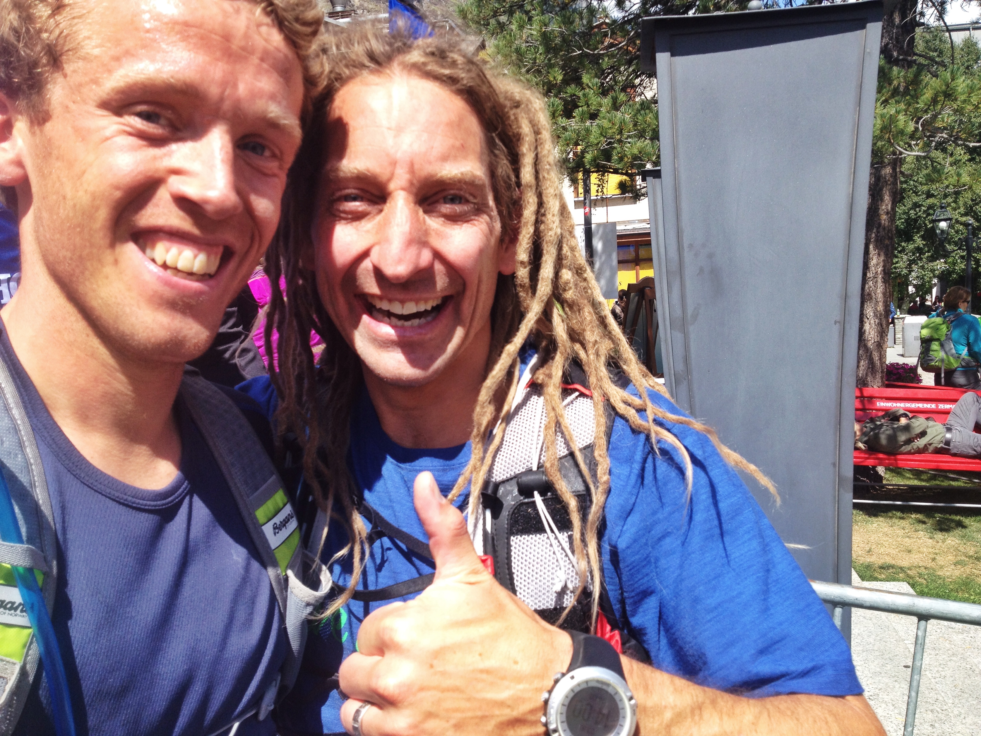 Jag tar lite vatten och går sedan och sätter mig solen för att kunna heja på Erik när han kommer springandes mot mål. Det är en trött men lycklig Erik som med stil forcerar slutkilometern. Vi sätter oss på en gräsplätt och tar del av varandras upplevelser. Erik berättar att han varit riktigt sliten i den andra stigningen men sedan återhämtat sig och fått till en bra avslutning på loppet. När det blir dags för prisutdelning går vi till scenen för att få se hur det har gått i täten. Folkhavet är massivt och segrarna hyllas som de hjältar de är. Herrklassen vinns av Ait Malek Zaid på tiden 4:45. En fantastisk prestation och tiden är bara 3 minuter sämre än den levande legenden Kilian Jornets banrekord från ifjol. Det visar sig att svenske André Jonsson fått till ett riktigt bra lopp och sprungit in på en imponerande 6:e plats och därmed gör entré på den internationella scenen. Damklassen vinns av Stevie Kremer (5:19) som oftast springer något kortare sträckor men nu vinner sitt längsta lopp hittills. Emelie Forsberg(5:41) springer på exakt samma tid som i fjol och blir 5:a. Hon känner sig egentligen starkare i år och är inte helt nöjd med den insatsen. Hon gläds ändå med de framför henne och ser dem som en inspiration och siktar vidare framåt.