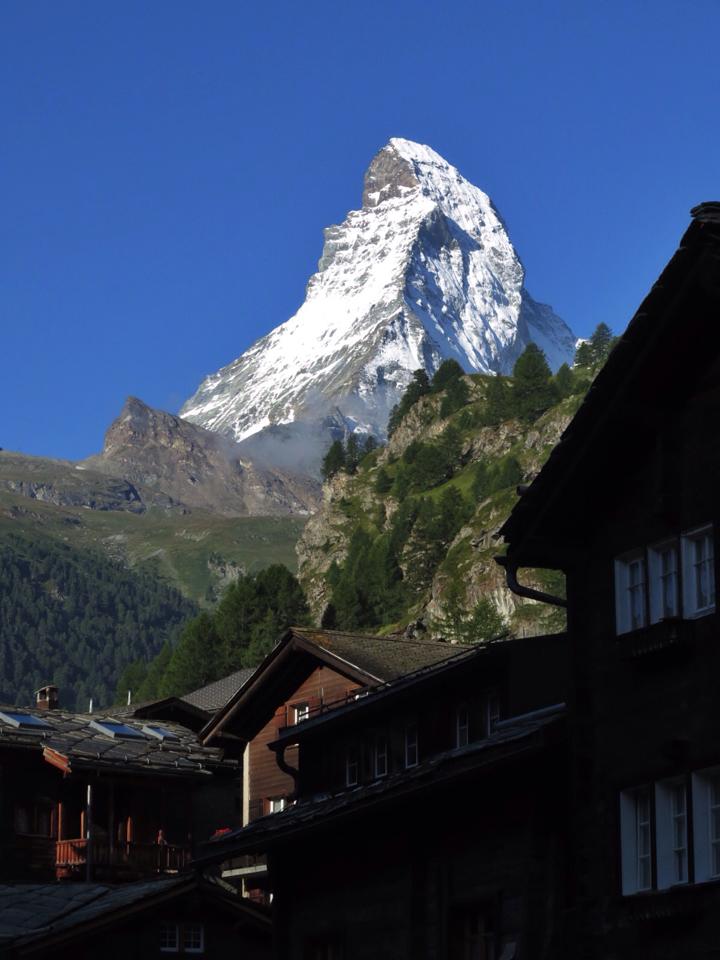 När jag vaknar på fredagen går jag raka vägen till balkongen och där blir jag ståendes. Det är svårt att inte hänföras av Matterhorns klassiska silhuett. Det sägs vara världens mest fotograferade berg och det betvivlar jag inte. Jag har minsann dragit mitt strå till den stacken.