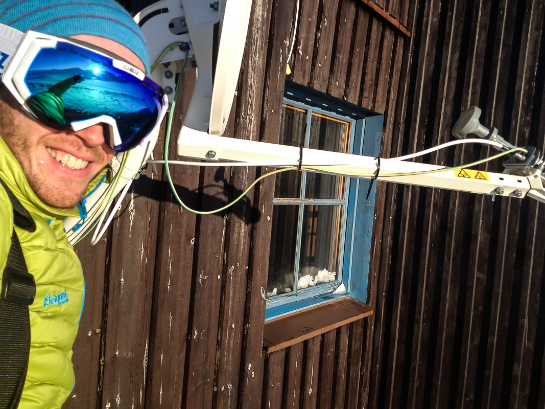 På en fjällstation är arbetsuppgifterna skiftande. Till exempel kan det vara att fixa en god signal till det världsomspännande datanätverket Internet.