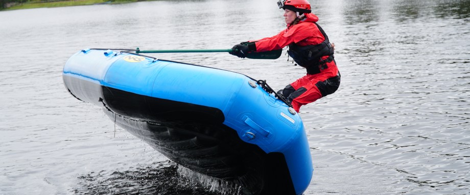 Avslutningsvis övade vi på att vända en båt som ”flippat runt” på rätt köl. Ett minst sagt krävande arbete för en guide.