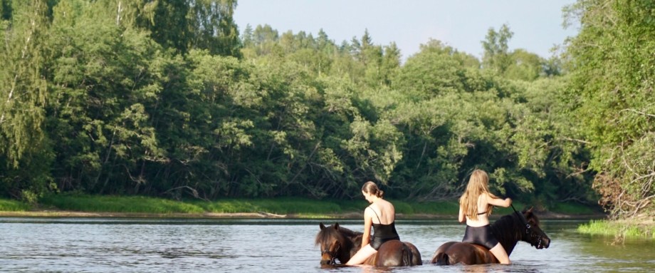 Från Munkfors fortsatte färden vidare mot Ransäter. På var och varannan strand såg vi människor som badade och solade trots att klockan blivit efter sex. Närmare Ransäter såg vi plötsligt flera människor som var i vattnet och badade med sina hästar. Det såg väldigt inbjudande ut, både för djuren och människorna. Målet för dagen var just Ransäter där vi hade fått tipset att bo på campingen som ligger alldeles intill Klarälven. Mycket fint ställe.