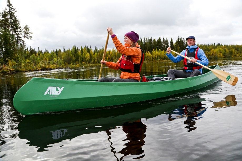 Från starten i Kärringsjön ner till Klarälvens utlopp i Vänern vid Karlstad kommer vi att paddla en Ally Kanot. En lätt och stabil kanadensare med en snillrik konstruktion som gör att den är hopfällbar. Spanten består av längsgående rör av aluminium som enkelt monteras ihop. Ytterskiktet är en armerad PVC-duk som träs runt spanten. I botten förstärks hela kanadensaren med en tjockare cellskummatta som gör hela kanoten tåligare och stabilare.