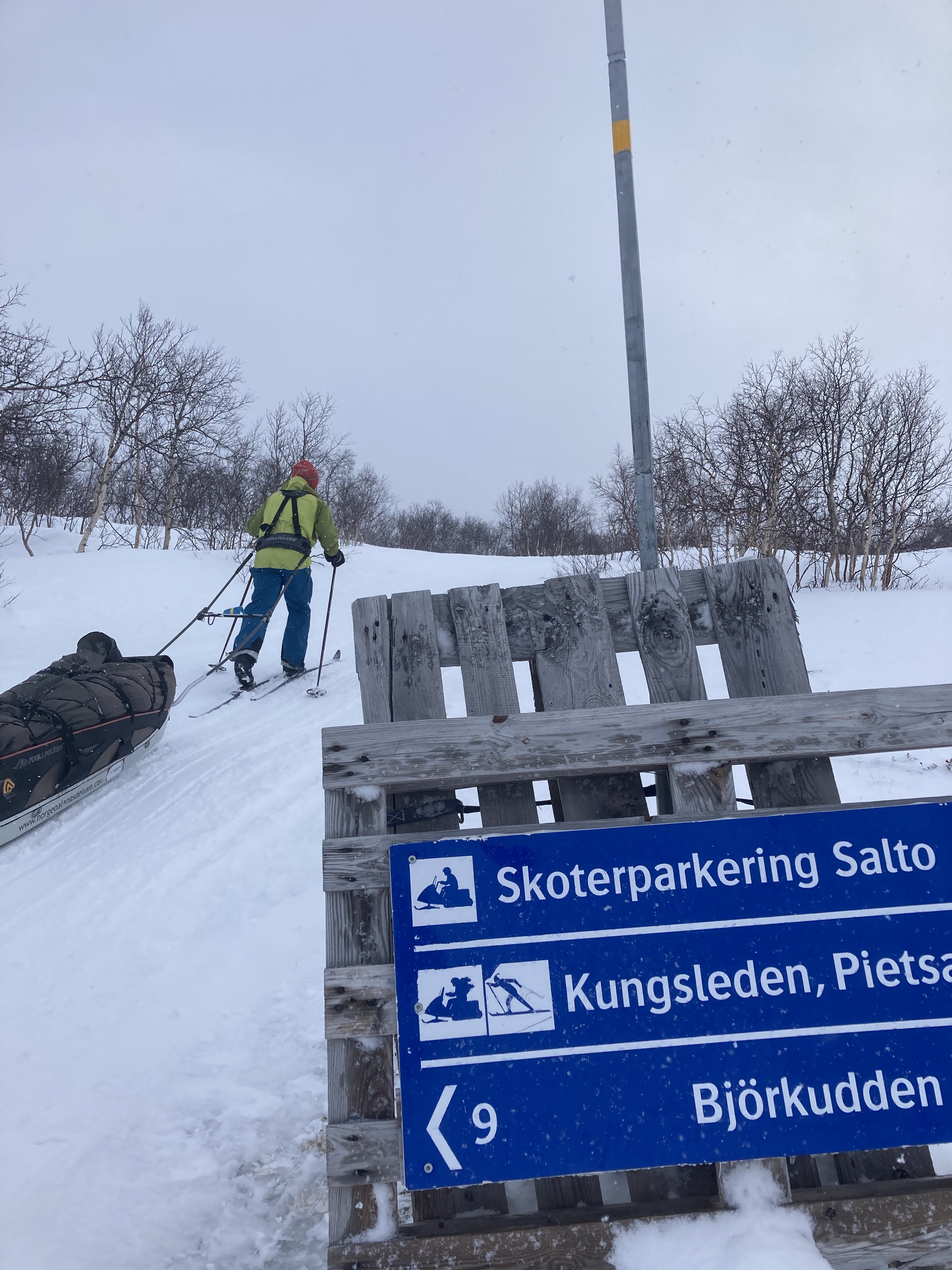 Jag körde till Niclas i Skellefteå igår och idag rullade vi till Kebnats. Den parkering man använder när man ska till Saltoluokta fjällstation. Vår grundplan var att skida från Ritsem till Saltoluokta men i morse när vi kollade vädret hade prognosen plötsligt försämrats och det talas om kraftigt snöfall och hård vind ons-tors. Snöfallet verkar vara mer omfattande i väster, som det oftast är i svenska fjällkedjan. Så vi börjar istället vår tur i öster och så vår vädret styra vart vi tar vägen.