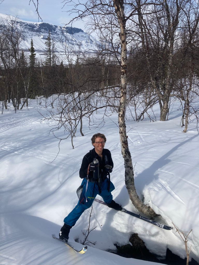 Dagens fjällväder har verkligen inte gjort någon besviken (förutom möjligen en solbränd underläpp…). Strålande sol från klarblå himmel och vindstilla. Vårvintern när den är som bäst och dagar man bara drömmer om att pricka in då man endast har en vecka avsatt till en vintertur. Det är skillnad om man ska vara ute i fem månader. Då får man ju vinterns alla bästa dagar!