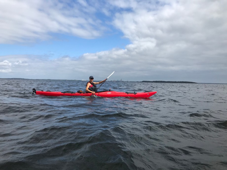 Vi hade som plan att först paddla till sydöstra spetsen på Lurö, Stångudden. Därifrån vidare till Trädgårdsholmarna där det ligger ett gammalt vrak. Fortsatte sedan att hålla oss på östsidan om fågelskyddsområdet Ruskskär som ligger söder om Lurö. Där ligger dessutom de få öar som finns på vägen mot Kållandsö. Vi gjorde ett stopp på St. Mellanskär där vi gick iland för att sträcka på benen. Det tog oss 2,5 h att ta oss över och på andra sidan väntade en överraskning.