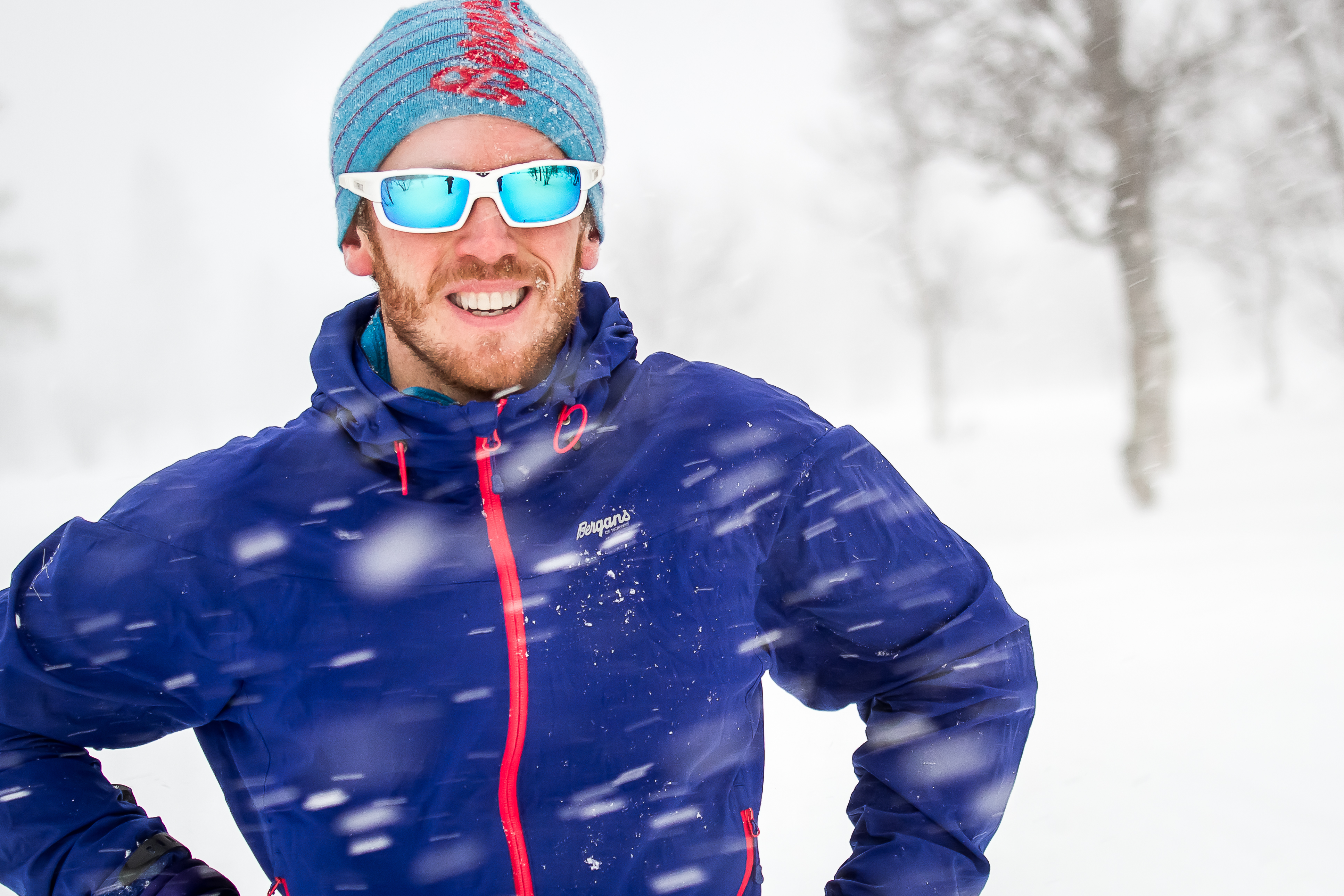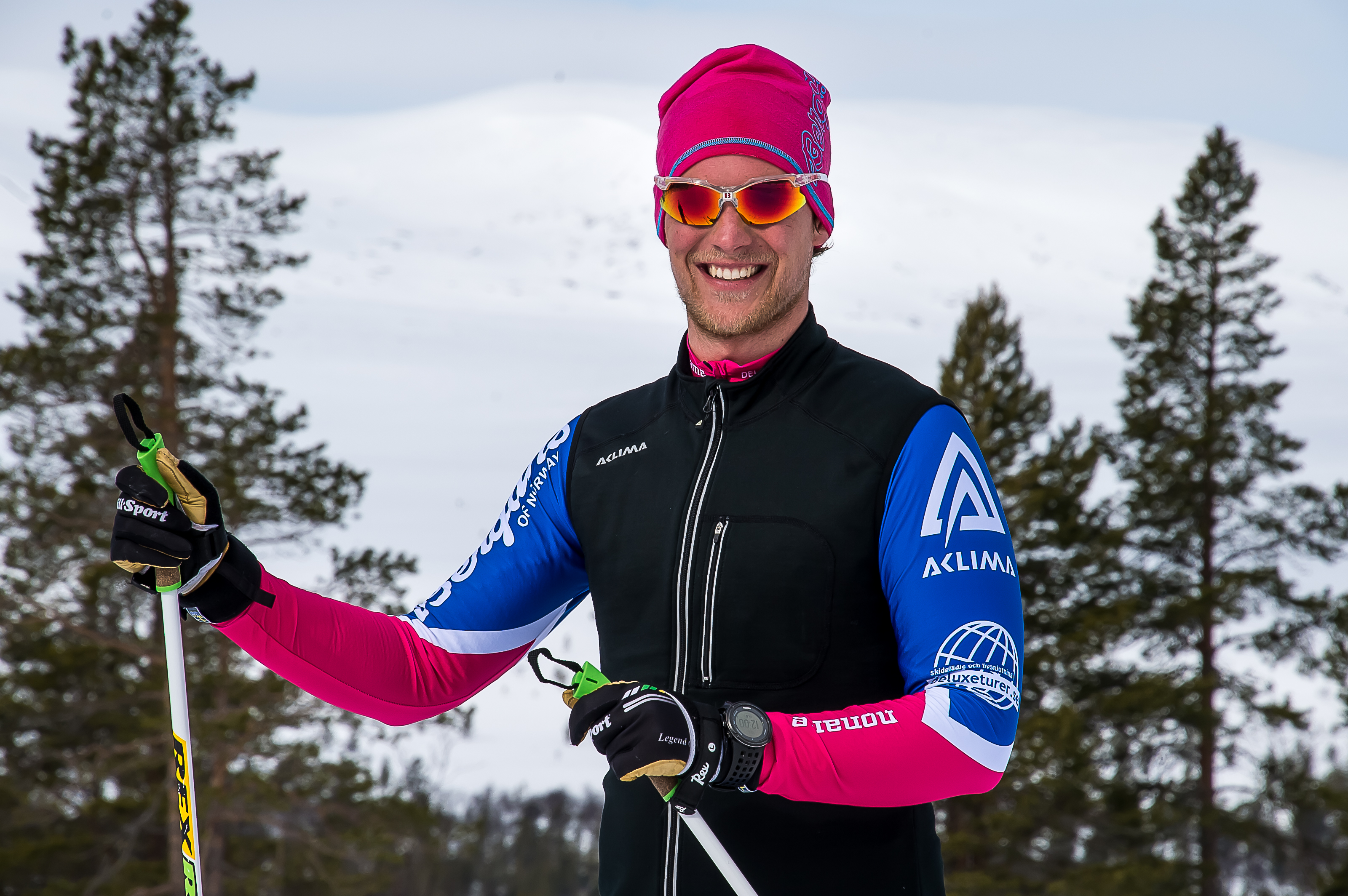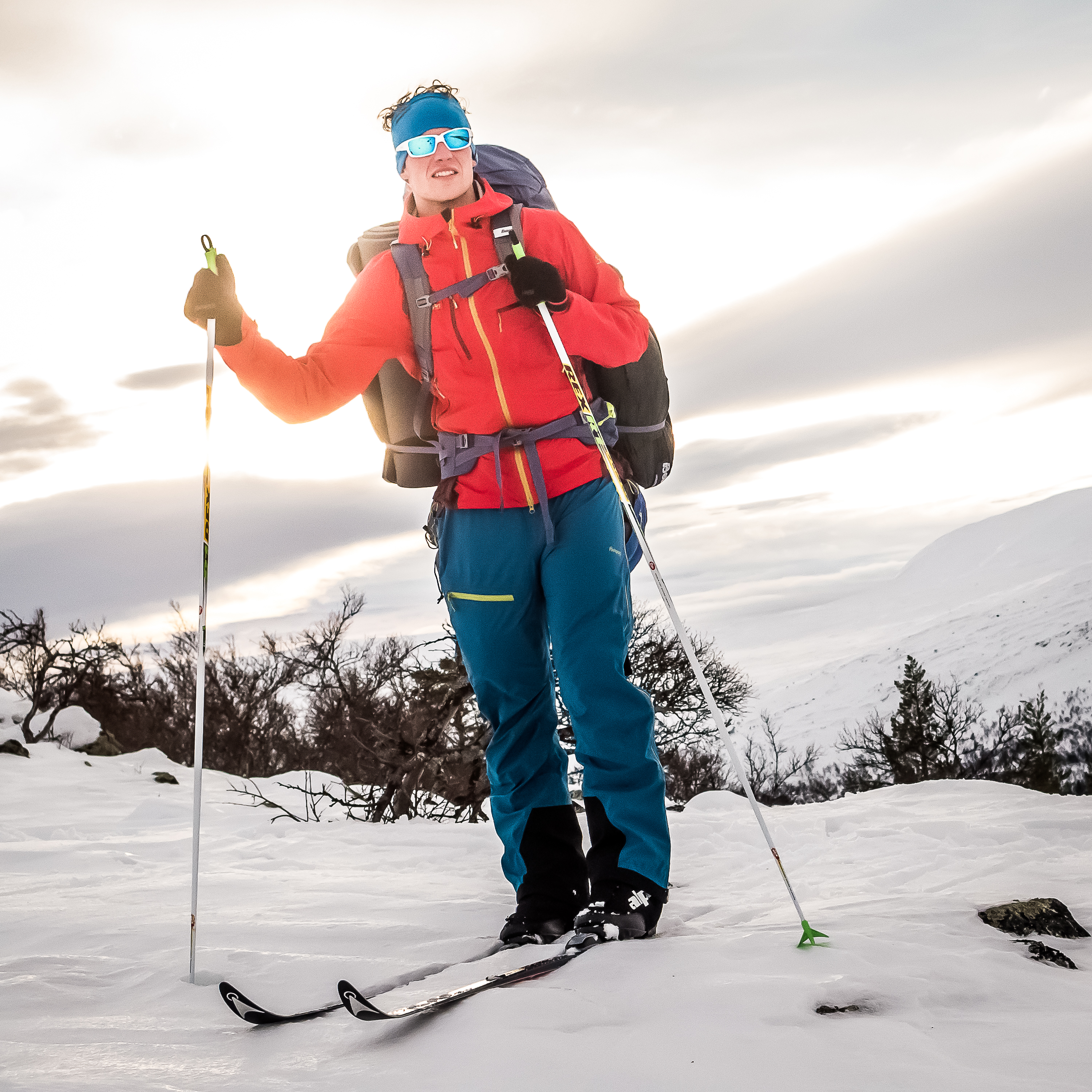 Niclas Bentzer skidar med Salsfjället i bakgrunden.