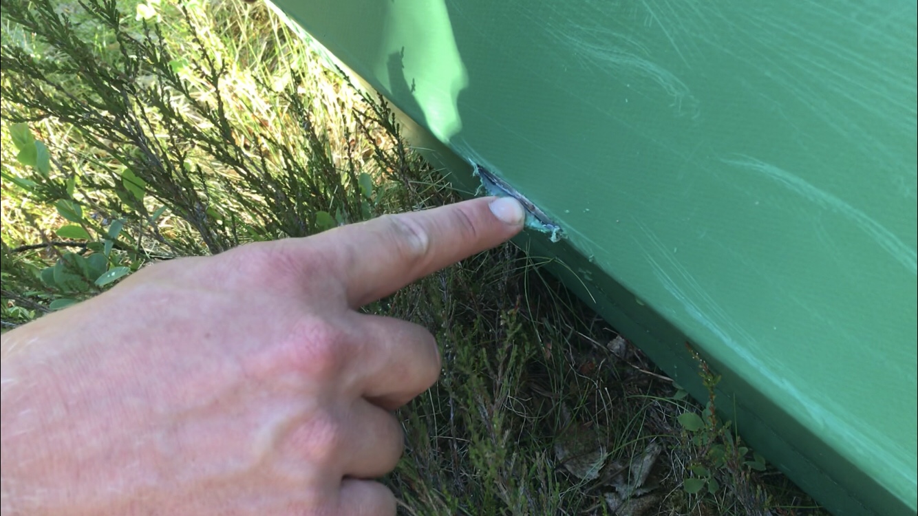 På skidan sitter gamla tåjärn. Det sitter inga remmar kvar utan jag ska skaffa nya tåremmar och hälremmar.