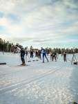 När vi åkte från Sundborn i morse var det -20 grader men uppe vid Grönklitt var det -17 grader. Med andra ord lätt att få fäste och jag lyckades även få till bra glid. Tyvärr var jag lite långsam med att lägga ut mina skidor på startfältet och hamnade onödigt långt bak. Men jag tänkte att det är nog inte hela världen så här i debuten när man ändå är lite ovan vi den höga farten. Det var lite trångt de första kilometrarna men jag kunde ganska snabbt avancera till en lagom position i fältet. Stakningen kändes bättre än förväntat och jag var dessutom stark uppför så under hela loppet kunde jag avancera och ta placeringar, en väldigt skön känsla. Niclas servade med dricka och jag hade gott om energi i kroppen under hela loppet. Han fotade dessutom lite och här nedanför kan du se några bidler. Klicka på någon av bilderna för ett bildspel.