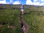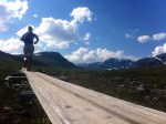 I backen upp från Tänndalen känns det att jag nu trots allt har några timmar i benen. Jag sänker farten något tuggar på steg för steg. Njuter av vyerna, fyller på energi med jämna mellanrum och vips så är jag uppe på krönet och kan skåda ner över Rogenområdet. Kraftigt präglat av istiden så är det fullt av småsjöar, åsar och en massa stora stenar. Det är någonstans här i krokarna som Sveriges få myskoxar håller till så med spänd förväntan kollar jag av fjällsidorna en extra gång innan jag sätter av utför.